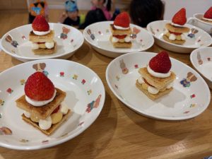 2月のお誕生日デザートは、お子様たちみんな大好きないちごの乗ったミルフィーユでした🍓