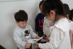 わからないときは、年上のお友達がヒントをくれたり、一緒に探してくれたりしながら、無事にプレゼントを見つけることができましたよ~💕