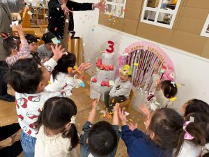 みんなでハッピーバースデー!のお歌と紙吹雪でお祝いです🌼
