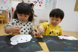 「ここにもやりたい」と追加でオーロラを描くお子様もいましたよ♪