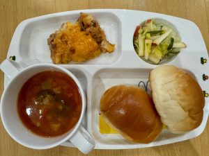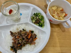 海外給食は毎月お子様にも人気で、調理スタッフさんが今月も美味しそうなメニューを考えてくれています♪