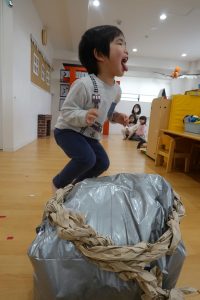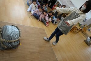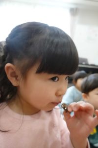 スタッフが見本を見せると「やってみたい!」とお子様たち。