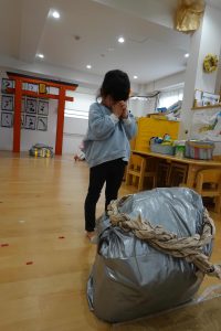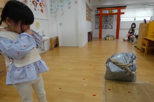 目を閉じながらまっすぐに進むのは難しく、石を通り越してしまったり、斜めに進んで全然違う場所まで行ってしまうお子様もいました💦