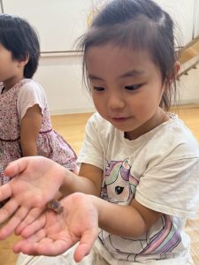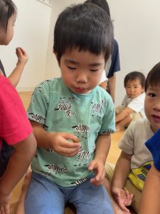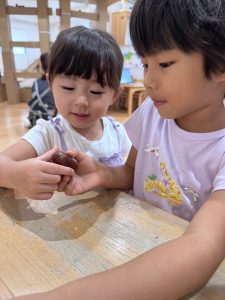 「かたーい!」「うえのとこトゲトゲしててちょっといたいー!」と興味津々で観察していましたよ♪