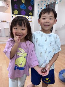 初めは、この見た目からか食べてみたい!というお子様はほとんどいなかったのですが、皮を剥いた甘栗を見ると「たべたい!」とみんな食べてくれました✨