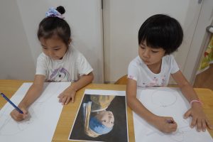 芸術の秋!ということで11月の壁面製作はヨハネス・フェルメールの『真珠の耳飾りの少女』のお絵描きをしました🎨