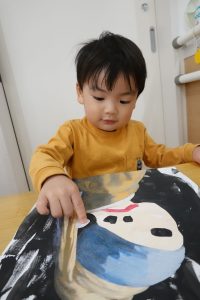 「ぼくのこれだよ♡」と完成した絵をみんなで見せ合いっこ♪