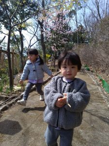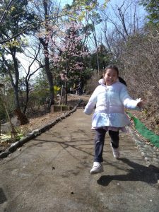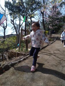 河津桜を横に走り出したお子さま。お花より体を動かしたかったようです😆