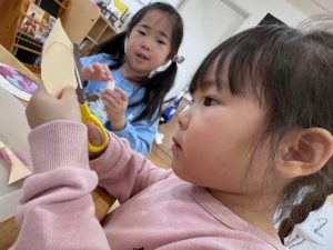 3歳児以上のお子様は自分で顔の形を切ってもらいました✂