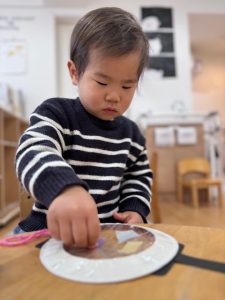 丸い形なので難しいのですが、集中して上手に切ることが出来ていましたよ😊