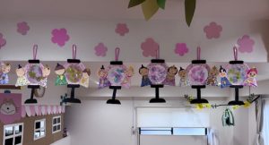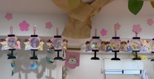 天井に飾ると「これわたしの♡」「これ〇〇くんのでしょ♡」とお友達とお話をして盛り上がっていました🎵