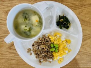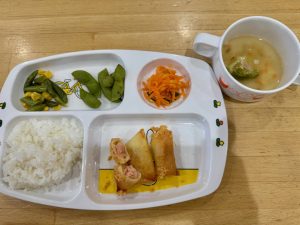 朝の会で紹介した料理が実際に食べられるのは、とっても嬉しいようで、いつもよりおかわりの声が多いです💕