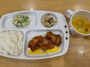 火曜日の名古屋風から揚げはお味噌の味がしてご飯にもよく合い、お子さまに人気でした✨来週は、滋賀県の郷土料理給食がでます。