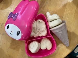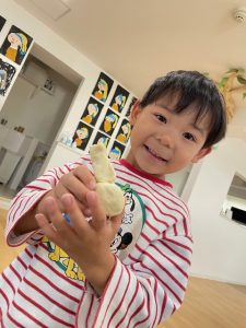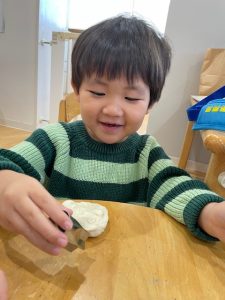小麦粉粘土の気持ちいい感触を楽しんでいましたよ♪
