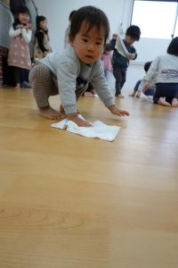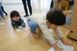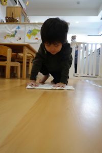 そこで、お子さまと大掃除をしました。雑巾を持って、順番に床を拭いていきます。