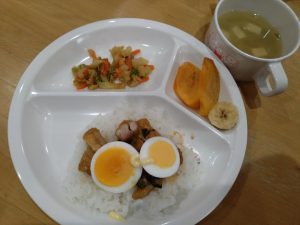プーティンはフライドポテトにグレイビーソースとチーズをかけたカナダの国民的ソウルフードだそうです。お子さまにも好評でしたよ✨