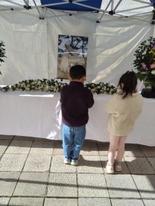この日は土曜日でしたが、駅前で献花が行われていたのでお子さまと行ってきました。