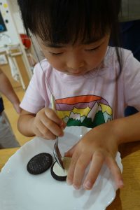 オレオをぱかっとわけ、クリームの方を使います🍪