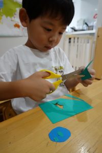 まず、月の満ち欠けに欠かせない、地球と太陽を画用紙で作ります🌎🌞