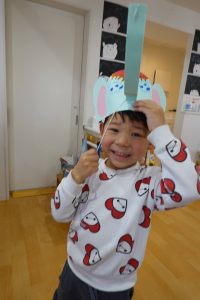 ゾウを見たり、ゾウに乗ることは難しかったので…ゾウさんお面を作りました🐘