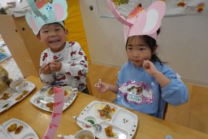 「おいしー!!!✨」「ゾウさんにも食べさせよっ💕」と、お友だちと喋りながら、みんなモリモリ食べていました😊