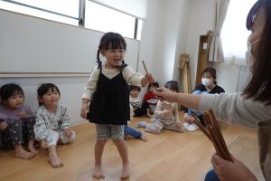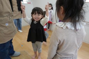 ポッキーのCM曲を流すと・・・ポッキーを持ちながらノリノリで踊りだすお子さまたちでした💃