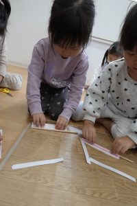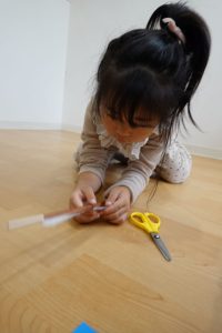 好きな味(折り紙)を選んで紙ストローに巻き付けます♪