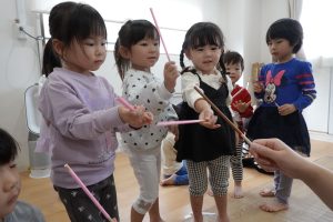 朝の会で「今日はポッキーの日です♡ポッキー用意したからプレゼントするね!」と伝えると「やったぁぁ♡」と大喜びのお子さまたち🎉(ちなみに偽物です😅)