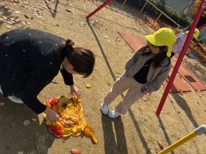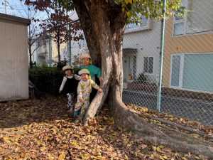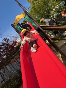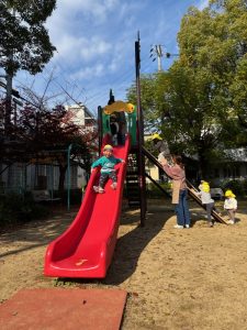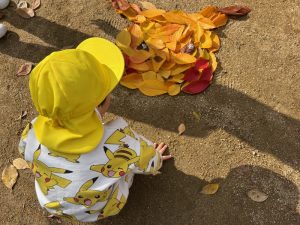 綺麗な葉っぱがたくさん落ちており、風が吹くたびに「きれ~い💕」と喜んでいました😆秋らしい気持ちいい気候にお子さま達も楽しんで遊んでいましたよ🎵