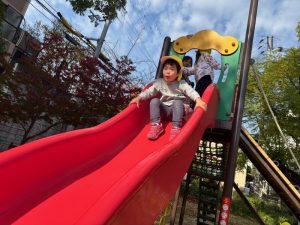 高いすべり台もへっちゃらで気持ちいい風を感じながら滑っていました♡