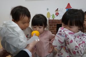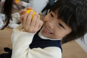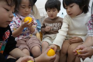 ゆずのいい香りが園内に広がりました~🍊足先からぽかぽか温まり、みんなぽ~となってほっこりしていましたよ♡