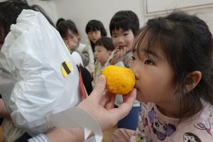 本物のゆずを触ってにおいを嗅いでみました🍊おばけが持ってきてくれましたよ🍊👻