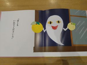 おばけもゆずを持参し登場です🍊(* ´艸`)