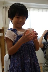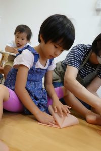 やりたーい!!ということで、お子さまたちも紙風船を作ってみました🎈