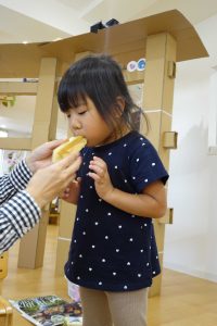 「昆布の…パン?」と美味しいのかな?とドキドキしながらパクリ。