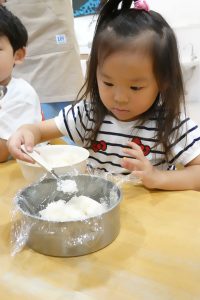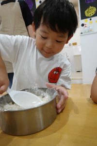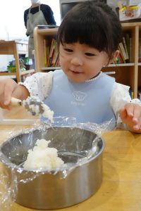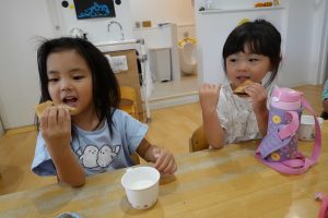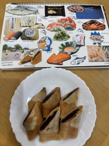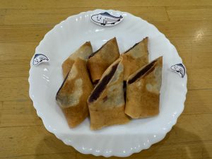 そして、おやつの時間には、富山で有名なお菓子、三角どらやきを調理スタッフさんが作ってくれました!