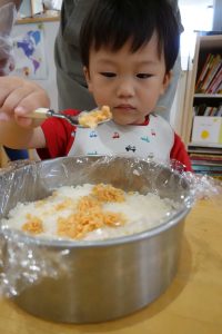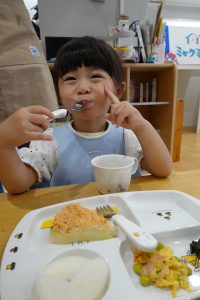 ます寿司風、とっても人気で、一切れでもボリュームがあったのですが「おかわりくださーい!」と、2切れ目をペロッと完食するお子さまも!