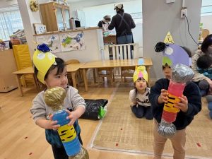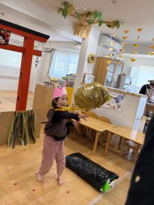 2月3日は節分でした。体調不良のお子さまもいて、みんな揃って節分ができなくて残念でした、、、お休みだったお友だちの分もしっかり豆まきをしましたよ!!!