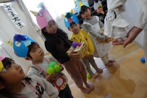 ④鬼に豆を確実に当てるために集中力と投げる力を鍛えます