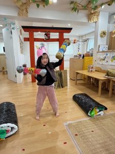 勇敢に鬼に立ち向かう、豆まきの様子はまた明日のブログにつづきます👹