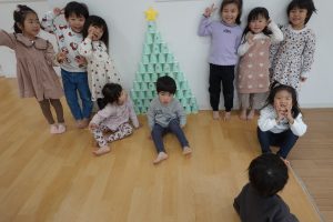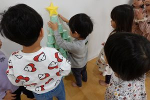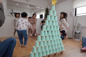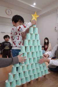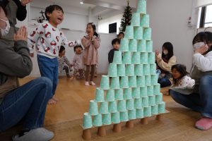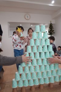 みんなで協力して10段の高いクリスマスツリーを目指します✨