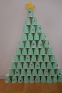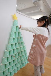紙コップを使って、クリスマスツリーを作りました🎄