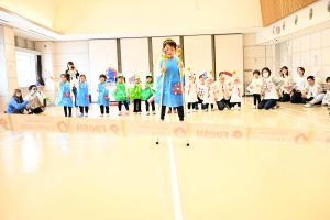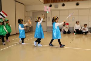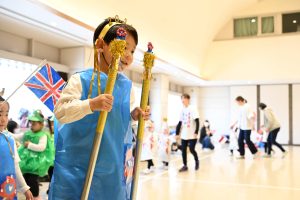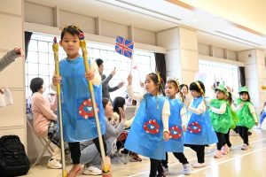 お子様が持っていた旗は、ご家庭で親子で色塗りをお願いしたものです♪