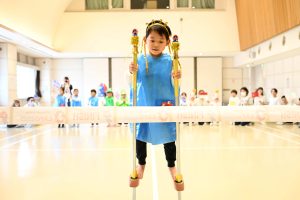 プログラム6番目は、今回が最後の運動会のお兄さんによる竹馬パレードです✨