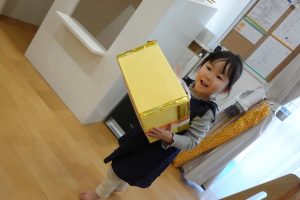 こぐまちゃんからお手紙が届いており「玄関にプレゼントがあるよ♡」と書いていたので取りにいってもらいました🎁