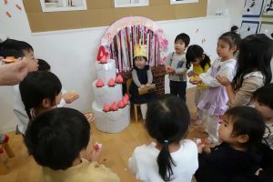 絵本紹介のあとは、お友だちみんなでケーキのデコレーション🎂✨