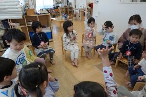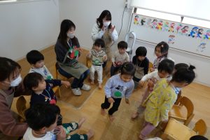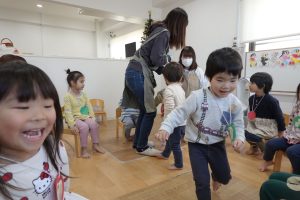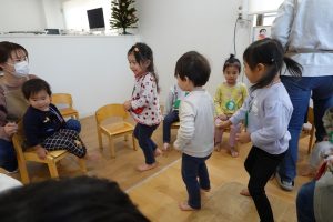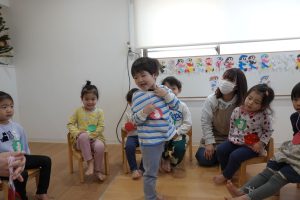 他にも、「メリークリスマス!」と言われると全員が椅子を移動します!3種類の指示をよく聞き分けて動かなければいけないちょっと難しいゲームです🤭