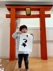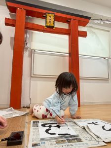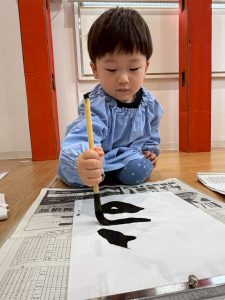 大きいお子様には細い筆で自分のお名前も書いてもらいました。