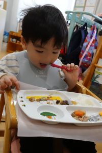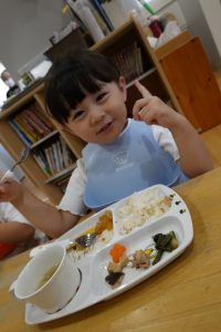 たくさん遊んだ後は、お待ちかねの給食タイム😋