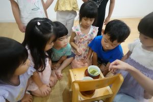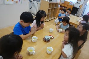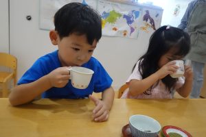 「いいにおい!」「おいしそう😋」「のんでみたい!!」とお茶が冷めるのが待ちきれない!といったお子様たち。
